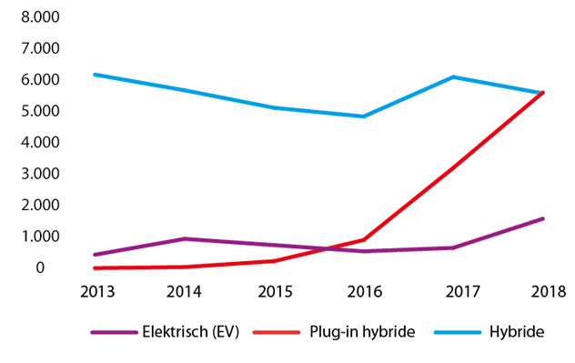 Na een daling van het aantal geëxporteerde diesels in 2016 en 2017, nam deze in 2018 met 8% toe. Dat komt ook voort uit de toenemende voorraden diesels. Een vele male sterkere groei was er bij plug-in hybrides. Net als EV’s kwamen die in veel grotere getale terug van zakelijke gebruikers.